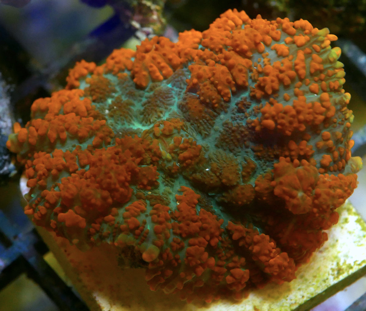 Beautiful reds, blues and greens. Tissue forms bubbles/aka bounce under high light. Developed in Doc's home tank in 2016.